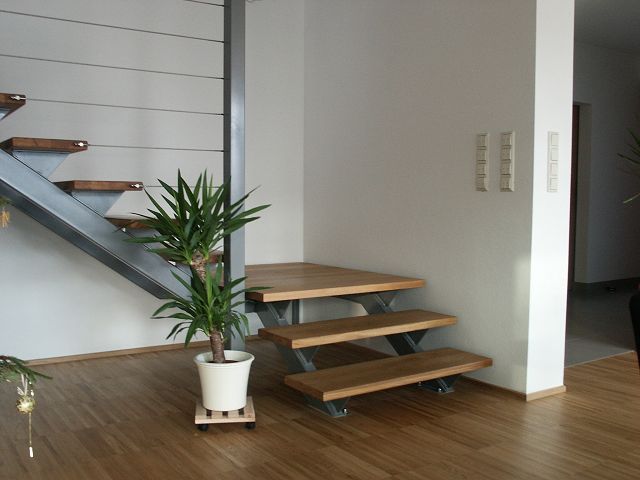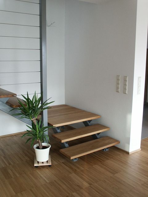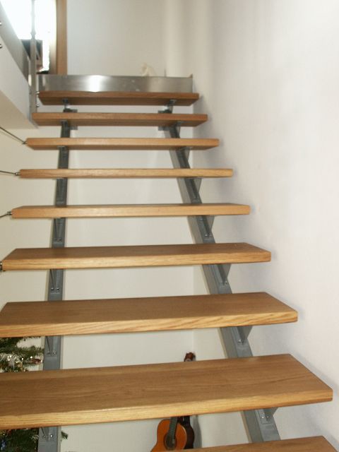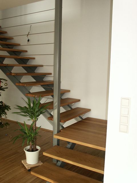 Ein sehr verbreiteter Stiegentyp, besticht mit Leichtigkeit und Eleganz. Stufen und Geländer werden auf den Wangen aufgesetzt.